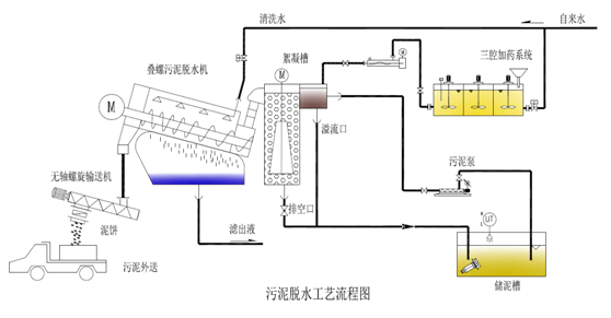 5.脱水机主体具有自我清洗功能,故不必为防止污泥堵塞而大量用水清洗。