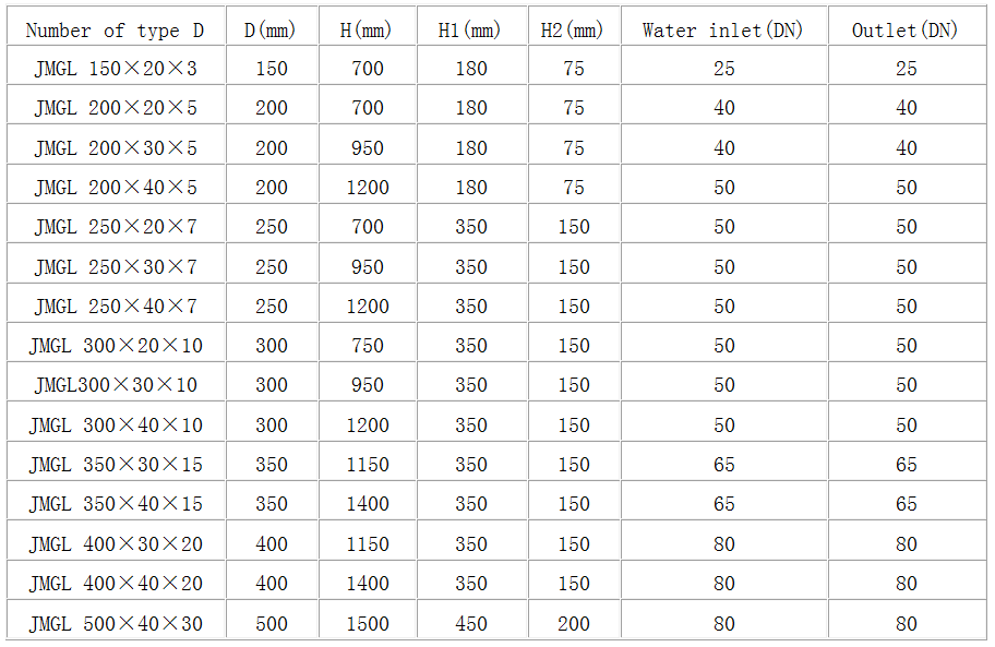 D: diameter of the H: total height h1: inlet center height from h2: outlet centers from the ground level